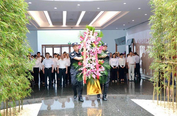 上午九時許,在陳麟輝館長的陪同下,全體與會同志緩步來到展廳中央,向陳云塑像敬獻花籃,表達對陳云同志的無限緬懷和崇敬之情。