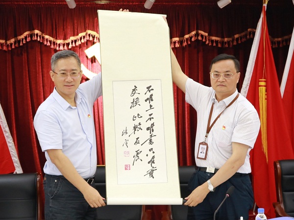 會上,陳館長向中智公司贈送陳云同志的 “不唯上、不唯書、只唯實,交換、比較、反復”15字訣的親筆手跡卷軸。